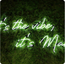 Neon glass-bent signs are constructed by hand-bending glass tubes into letters, shapes and other fully customisable architectural structures, which are then filled with inert gas. When a power-efficient and high-voltage electrical current flows through the inert gas, the tubes glow, emitting a coloured light of your choosing.